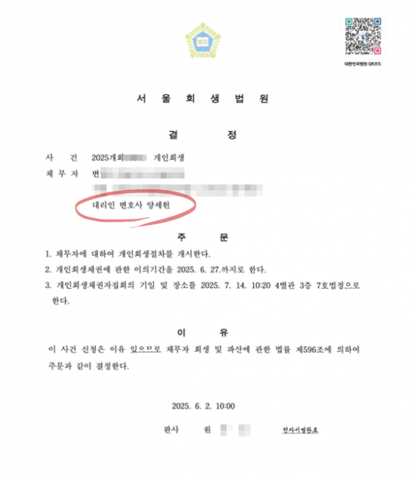 - 다음글개인회생_개시결정[회사원_변제기간 24개월 단축] 25.06.09