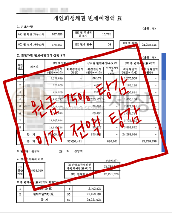 탕감률 : 75%, 이자 전액 탕감