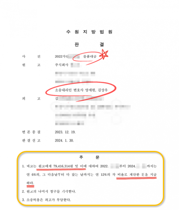 상대방의 물품대금지급의무를 인정하여, 물품대금청구의 소에서 승소한 사례입니다.