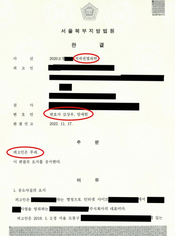 형사 [형사 사건] 저작권법 위반 무죄 판결을 이끌어 낸 사건
