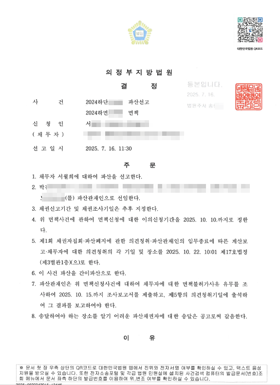 회생·파산 개인파산_파산결정[가정주부,과거 사업장운영]